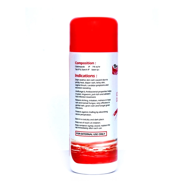 Zolyn soothes skin rash caused due to prickly heat, diaper rash, itchy skin, vaginal thrush, candida symptoms and excessive sweating.